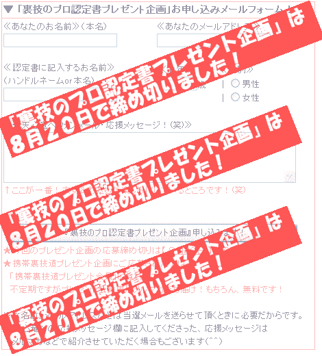 「裏技のプロ認定書プレゼント企画」は、メルマガ読者さんだけが対象でっす!